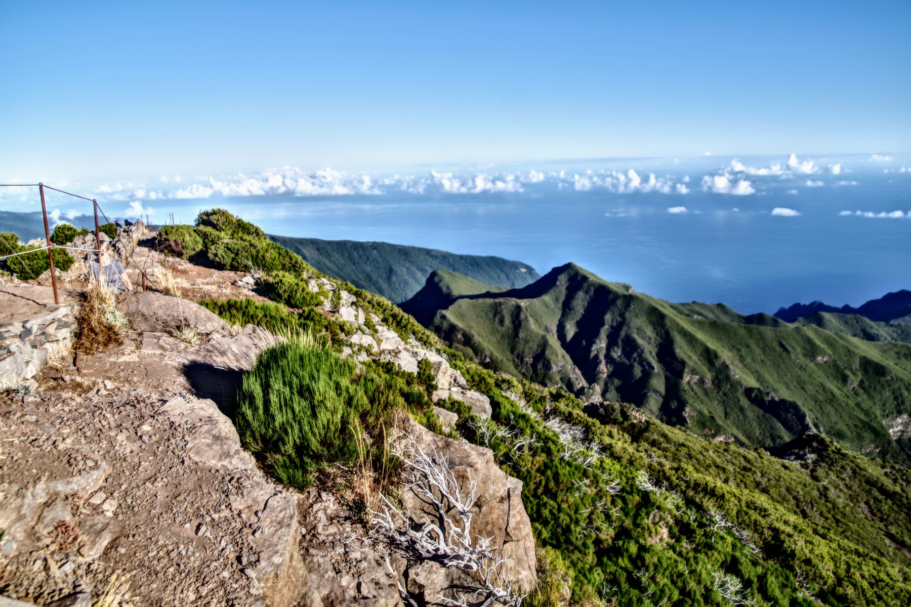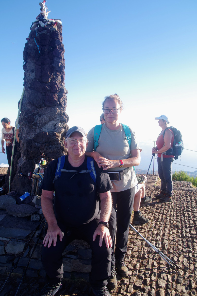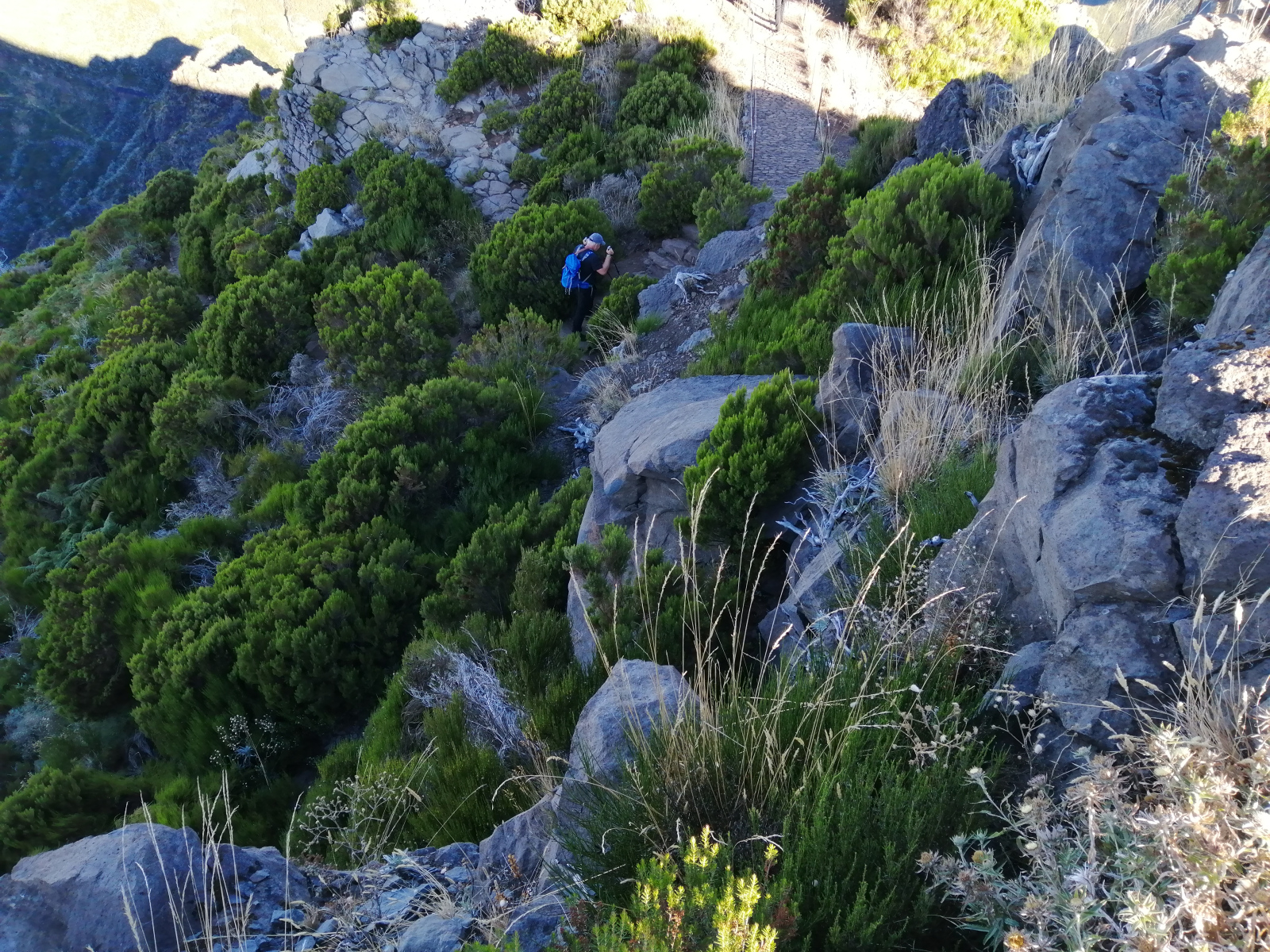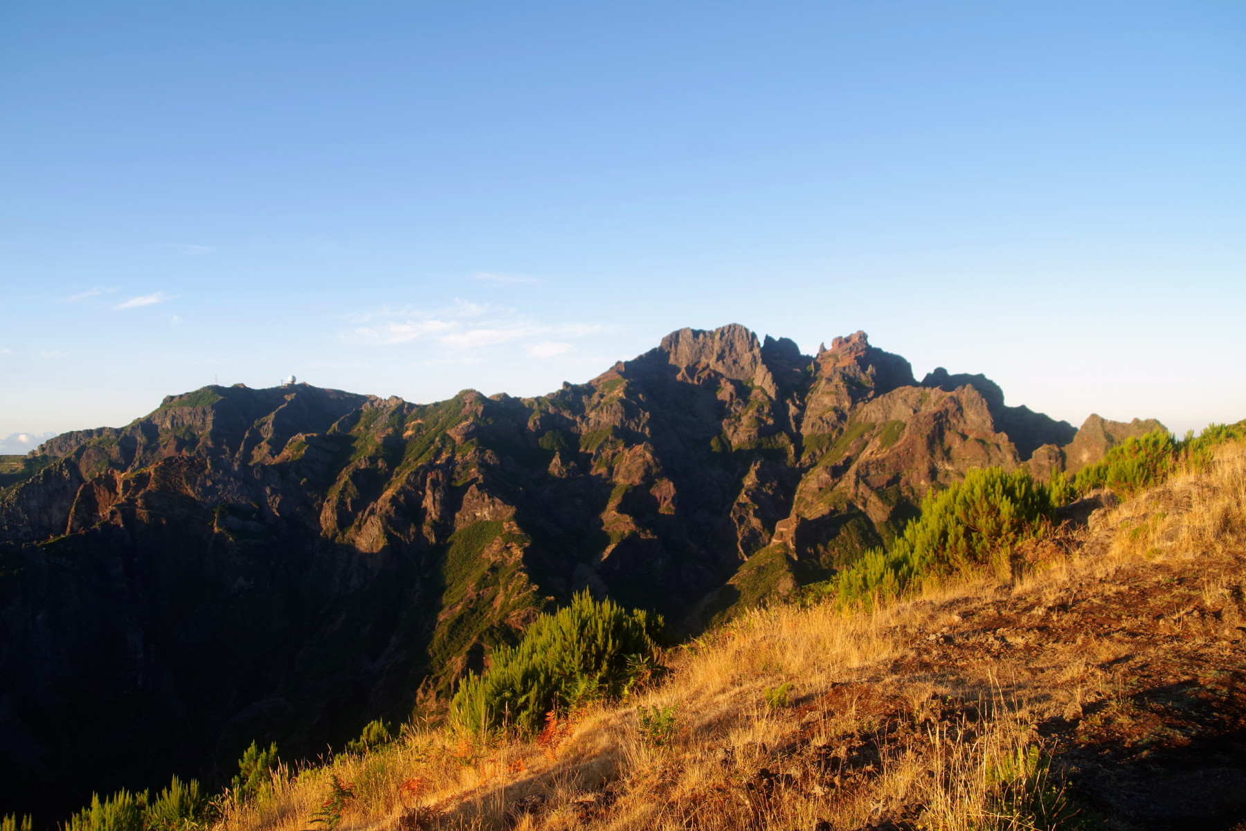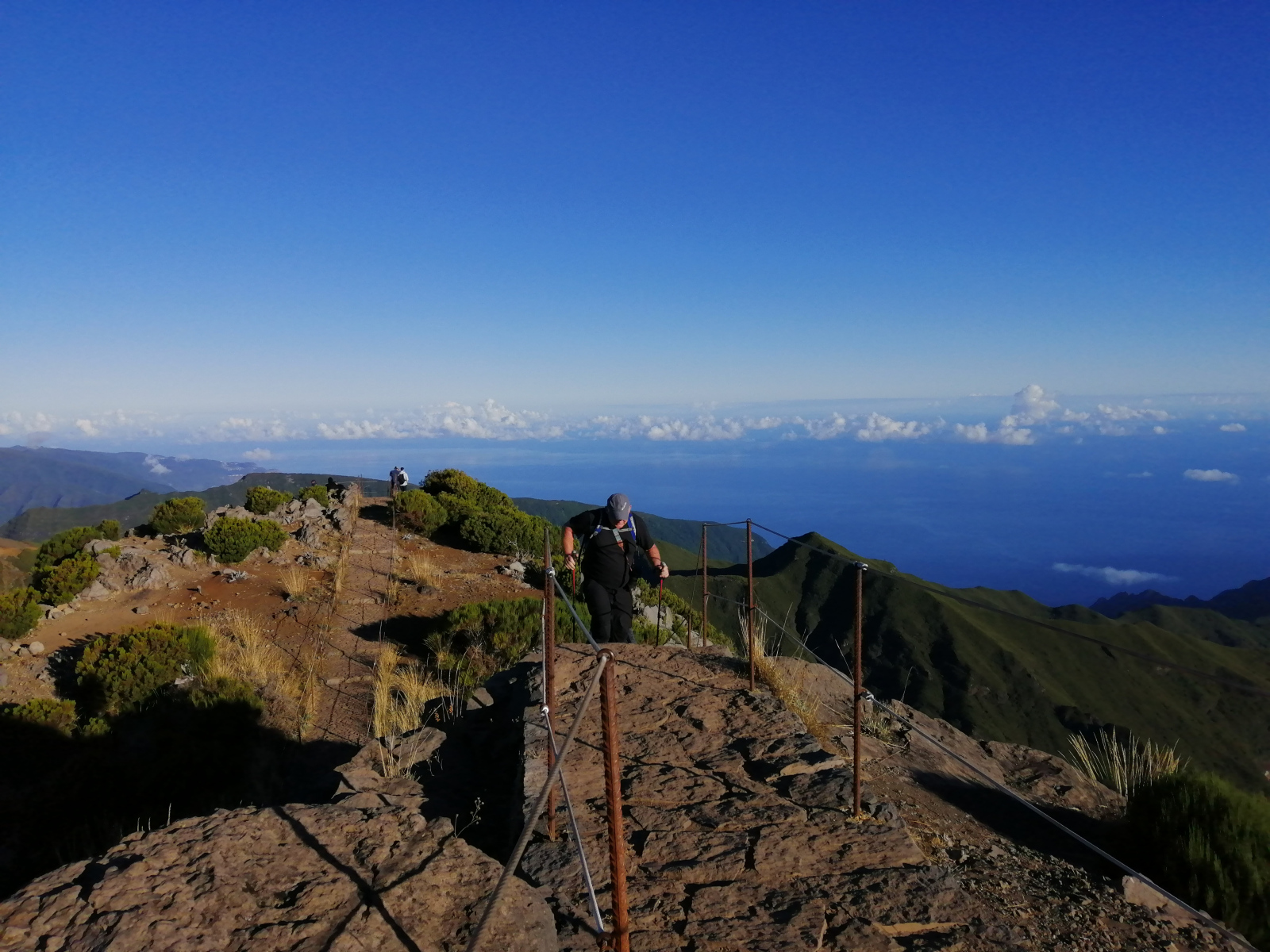 Diesmal sind wir nicht zu spät! Schon bei Sonnenaufgang stehen wir auf der Achada de Teixeira in ca. 1300 Meter über dem Meer. Eine grandiose Gebirgskulisse begleitet unseren Aufstieg zum höchsten Berg Madeiras. Über gefühlt endlose Stufen geht es stetig bergan. Schon bald ist jedoch die Albego am Fuß des Gipfels des Pico Ruivo zu sehen. Wir steigen jedoch, den Kaffee rechts liegen lassend, zuerst einmal hinauf und werden mit einer tollen Rundumsicht auf die Schluchten und Nachbargipfel, den Pico das Torres und den Pico arieiro (mit der Kuppel der Radarstation), die Hochebene Paul da Serra (mit den Windrädern) bis zur Küste, belohnt. Beim Abstieg kriechen schon wieder die Wolken die Bergflanken herauf. Die uns jetzt entgegenkommen haben da wohl das Nachsehen.