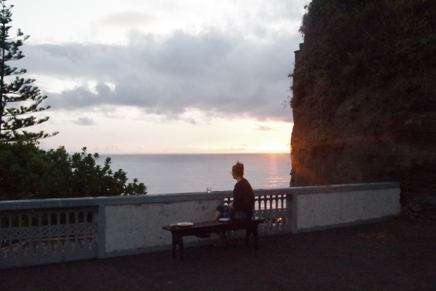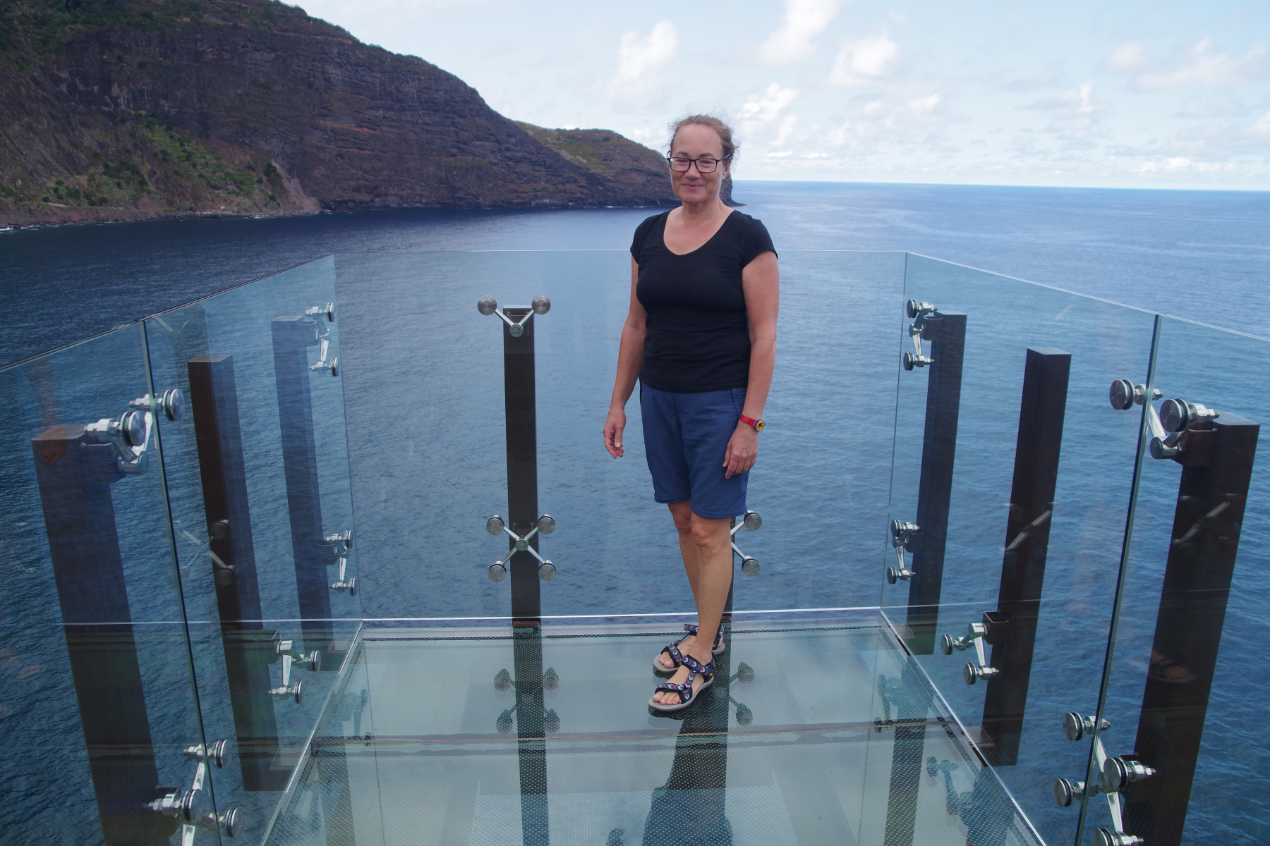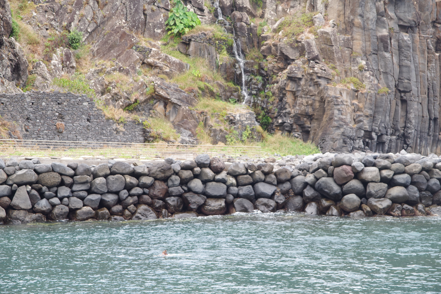 Dann erstmal zischen lassen im Hafencafe und danach ab in die Fluten des piscinais natural. Erstaunlich, wie die Zeit vergeht! Unseren ersten kurzen Ausflug auf Madeira krönen wir gegen 16:00 mit dem Besuch des Miradauro oberhalb der Badebucht – mit Blick in die Tiefe vom Skywalk.
