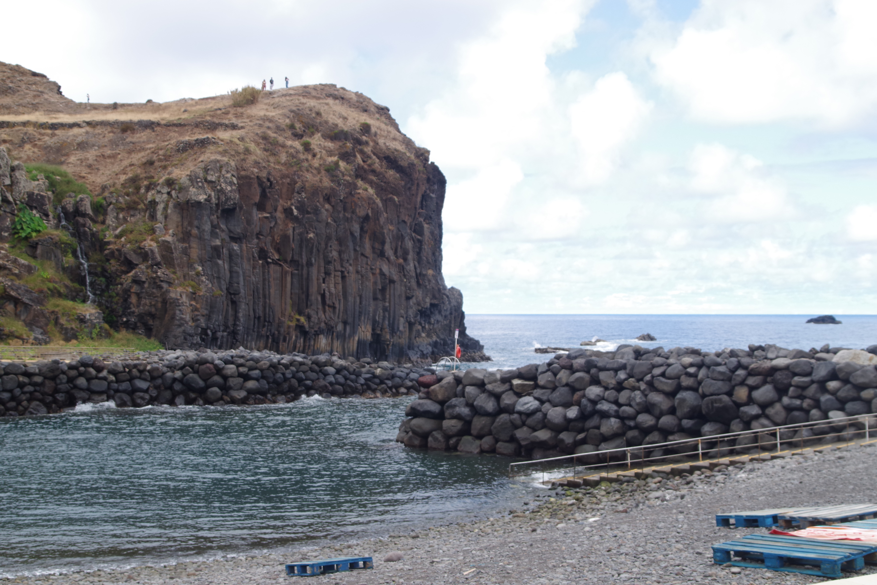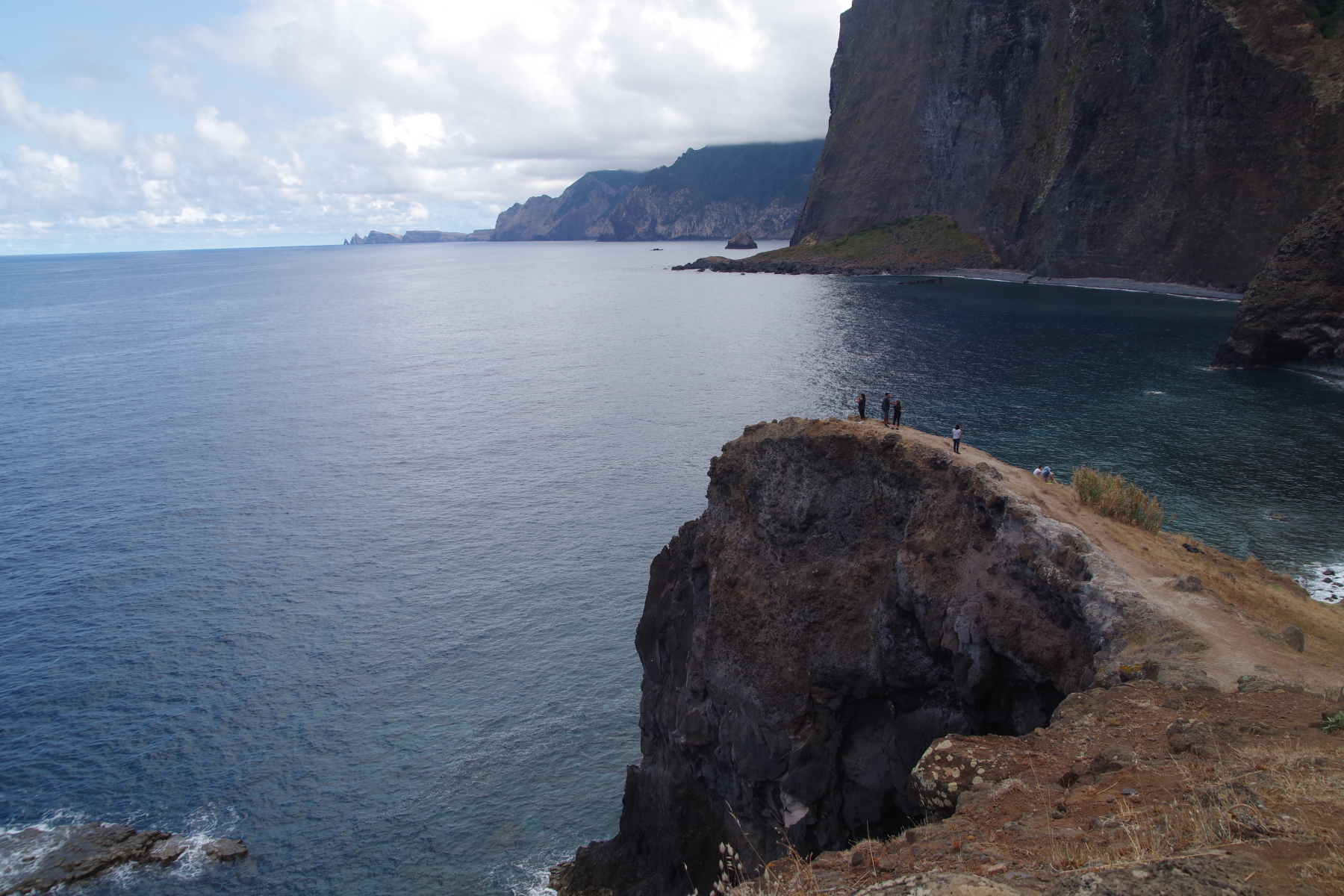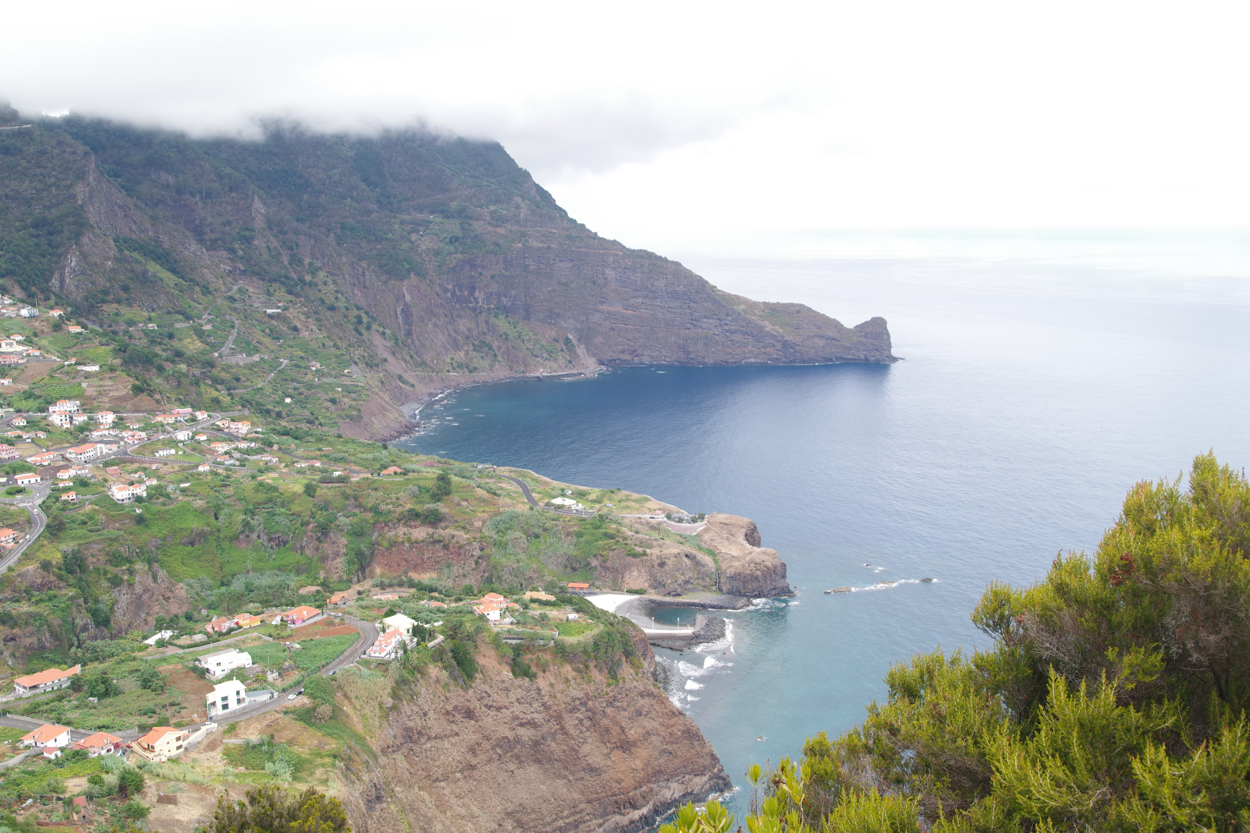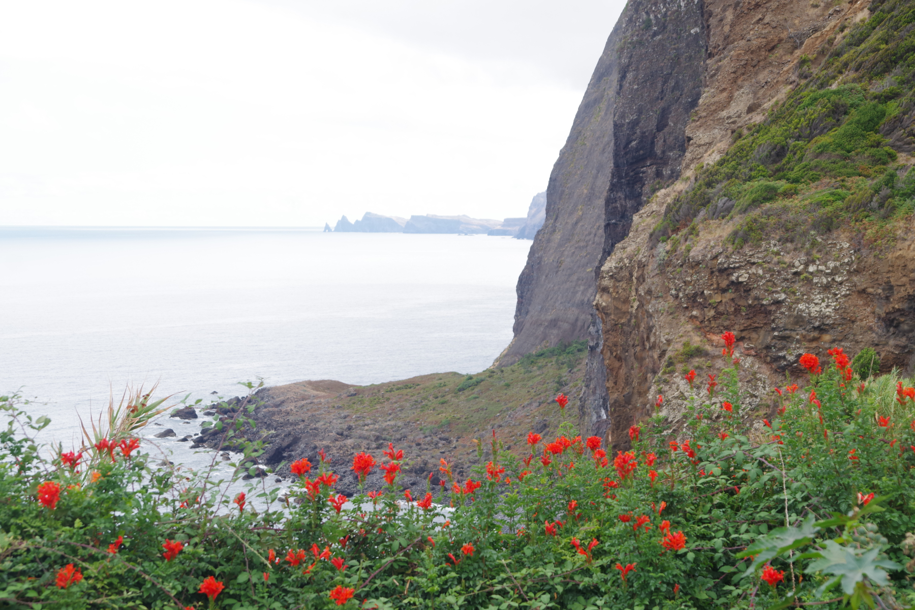 Macht nichts, vom Weg aus gibt es so manchen grandiosen Blick auf den Atlantik und den Nachbarort Faial, oder auch das von Schluchten durchzogen Hinterland.