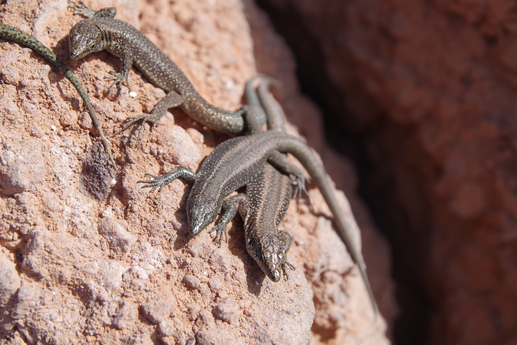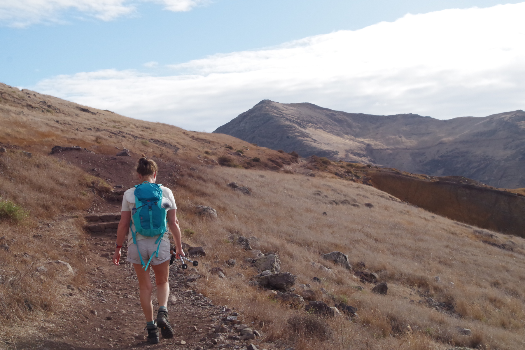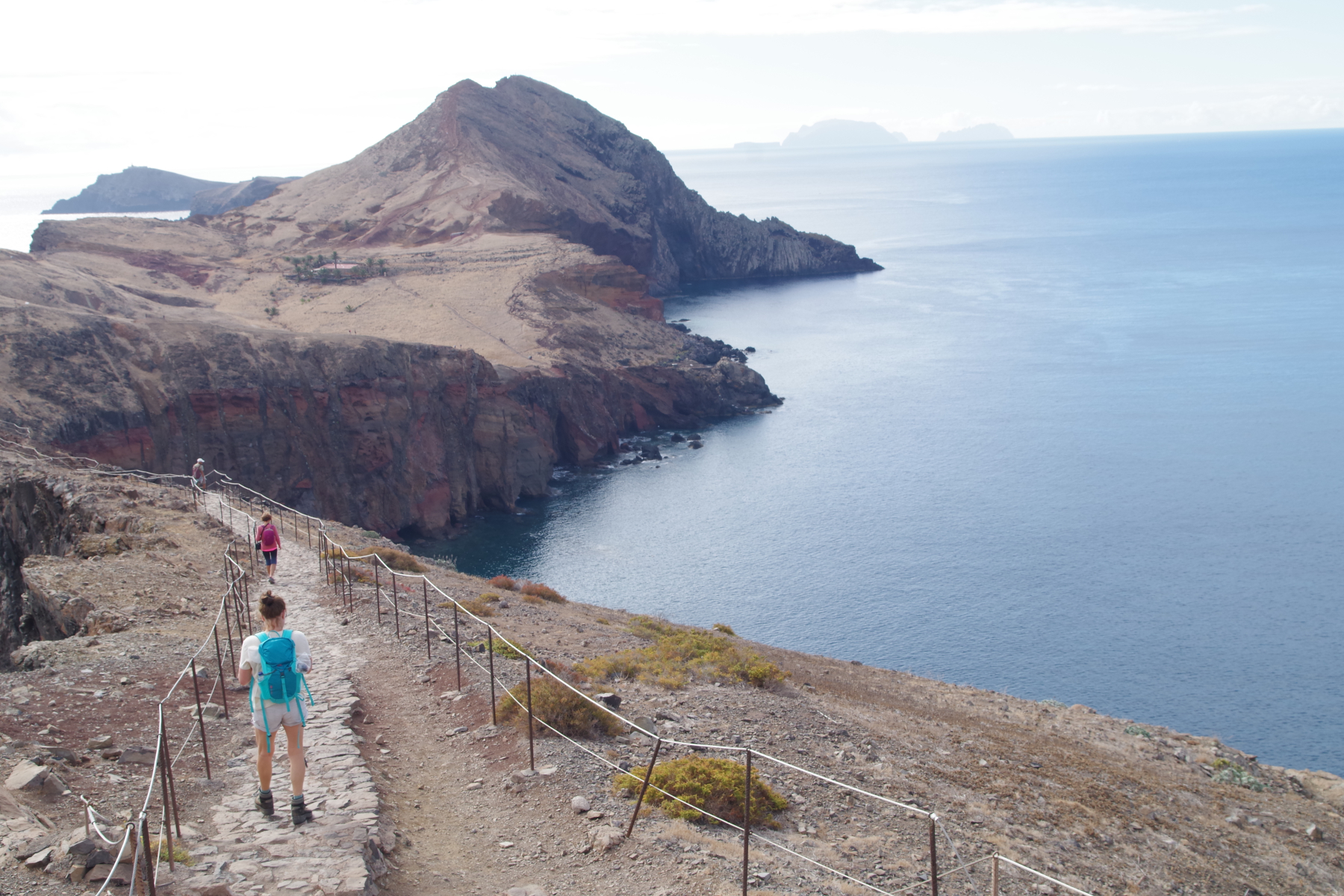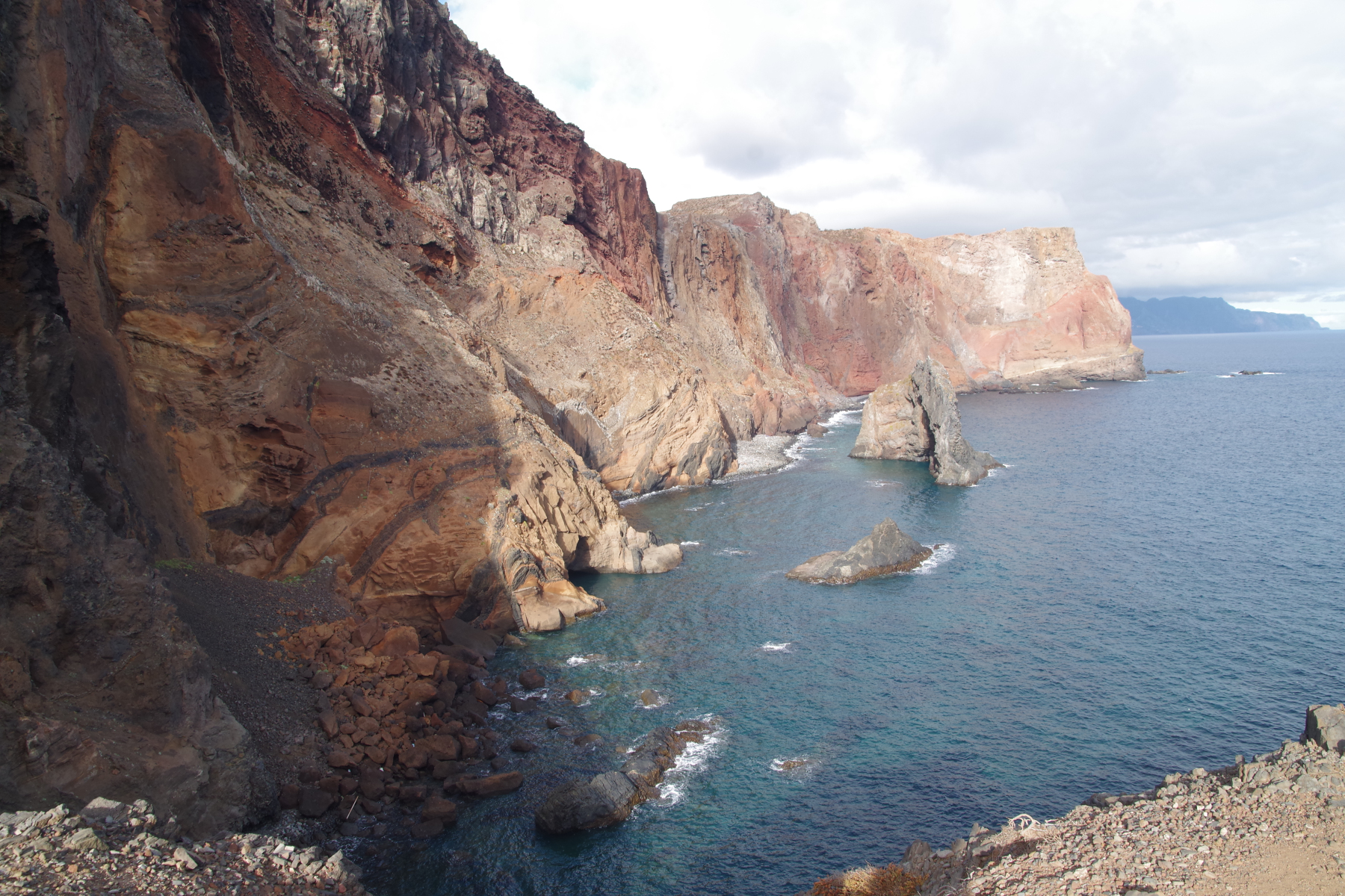 Über die Touristenautobahn gings heute zur Ponta de Sao Laurenco. Die östliche Halbinsel ist verlässlich sonnig, heiß und trocken, auch wenn sich der Rest der Insel Wolken verhangen und feucht zeigt. Der Gipfel des Tages heißt Mouro furado, wegen dem Fenster an seinem Fuß. Zahlreicher noch als die Touristen sind die madeirensischen Mauereidechsen am Gipfel. Die betteln richtig und laufen die Beine hinauf.
